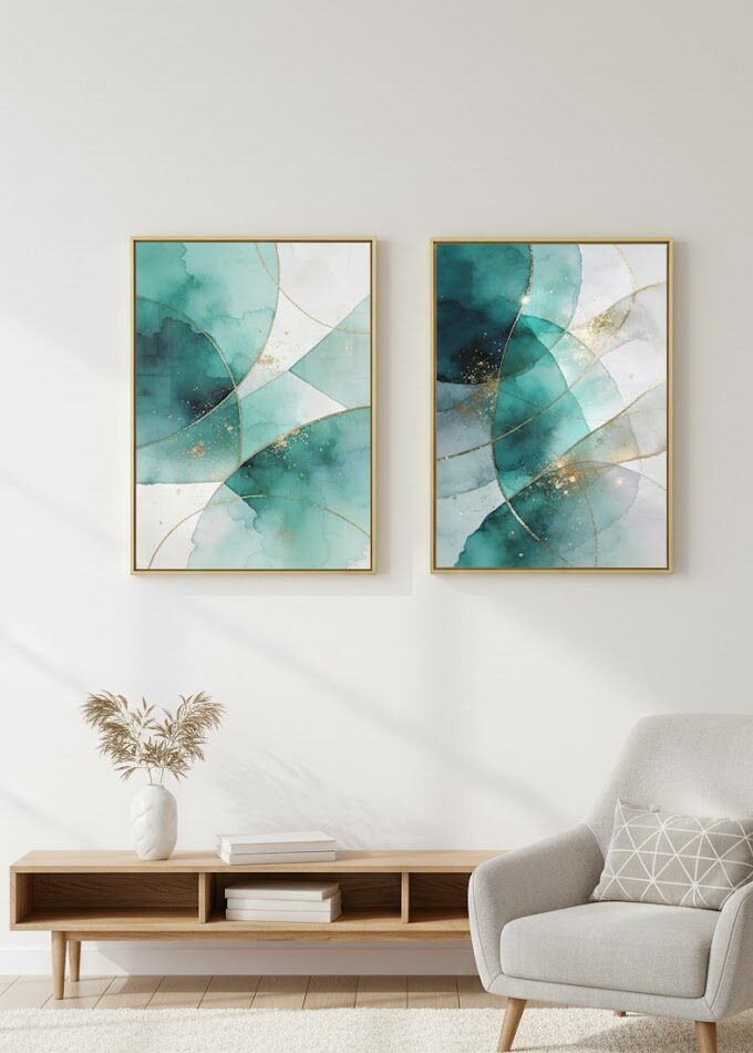 KIT 2 Quadro Abstrato Aquarelo Verde