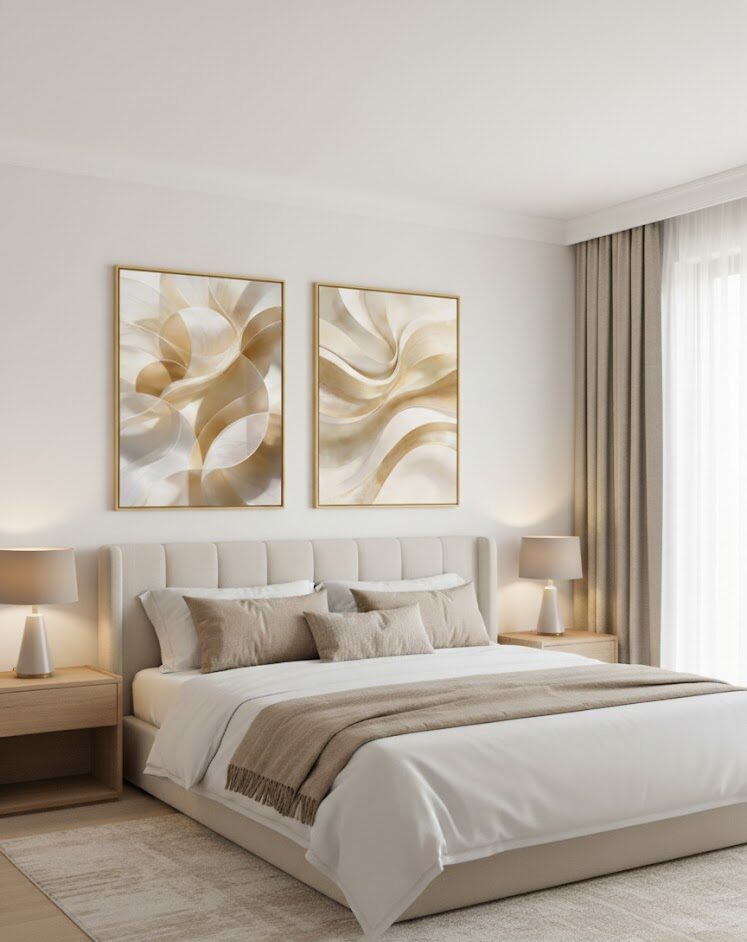 Seja o primeiro a avaliar “KIT 2 Quadro Lançamentos Abstrato Tecido Bege”