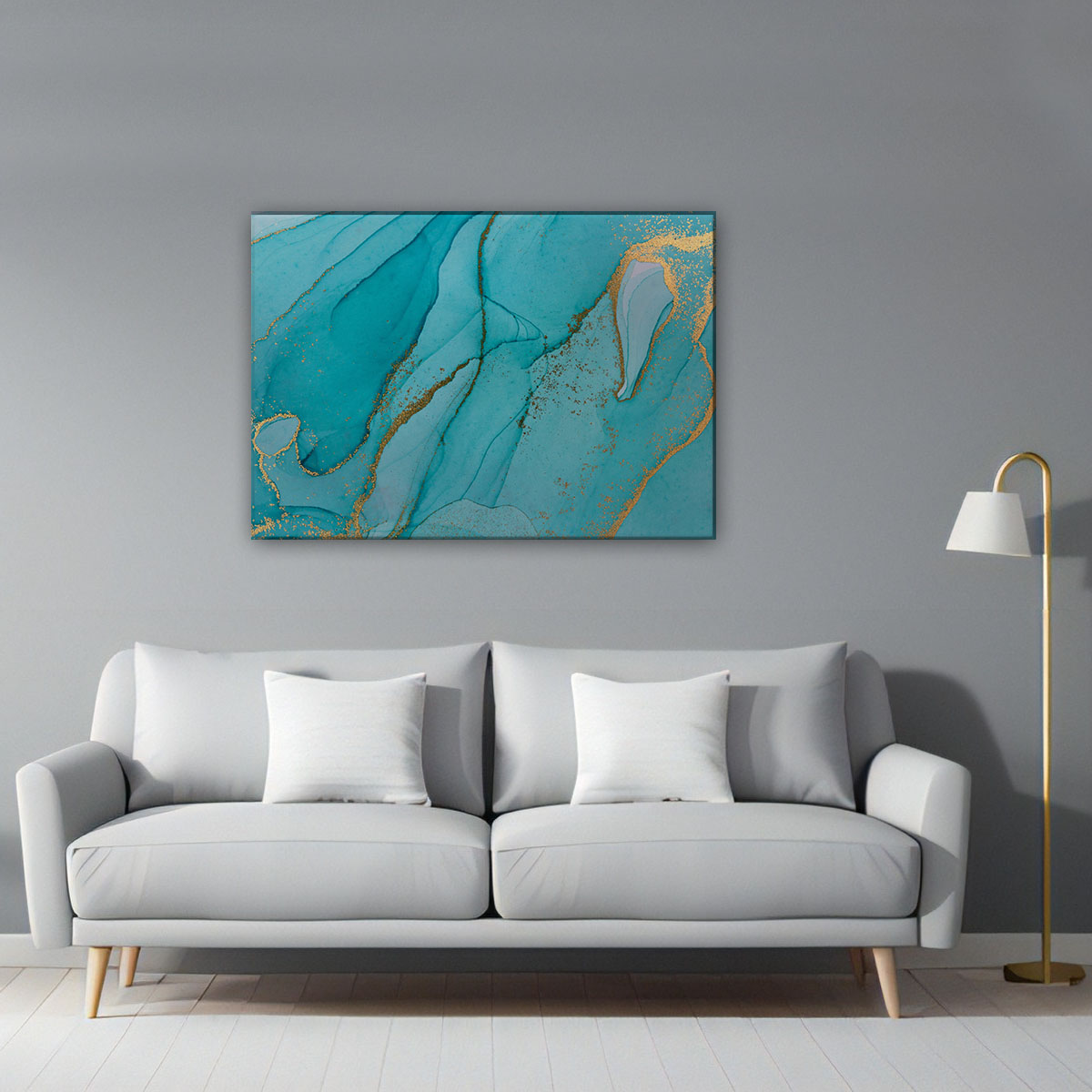 Quadro Abstrato Mármore Verde Água e Dourado