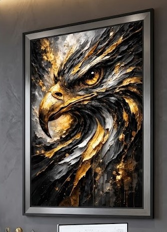 Quadro Animais Águia, Preto com Dourado