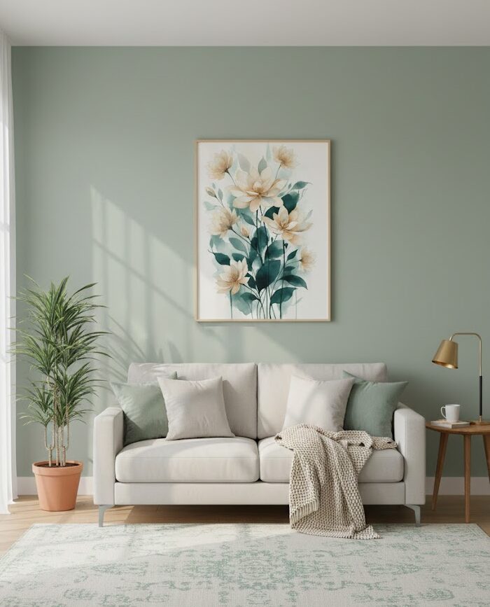 Quadro Lançamento Natureza Flores Cloud Dancer com Folha Verde